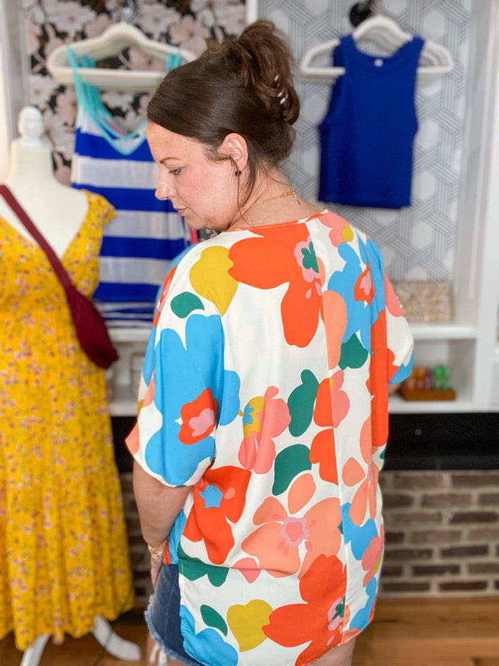 FLORAL WOOL PEACH V NECK POCKET DOLMAN SLEEVES TOP